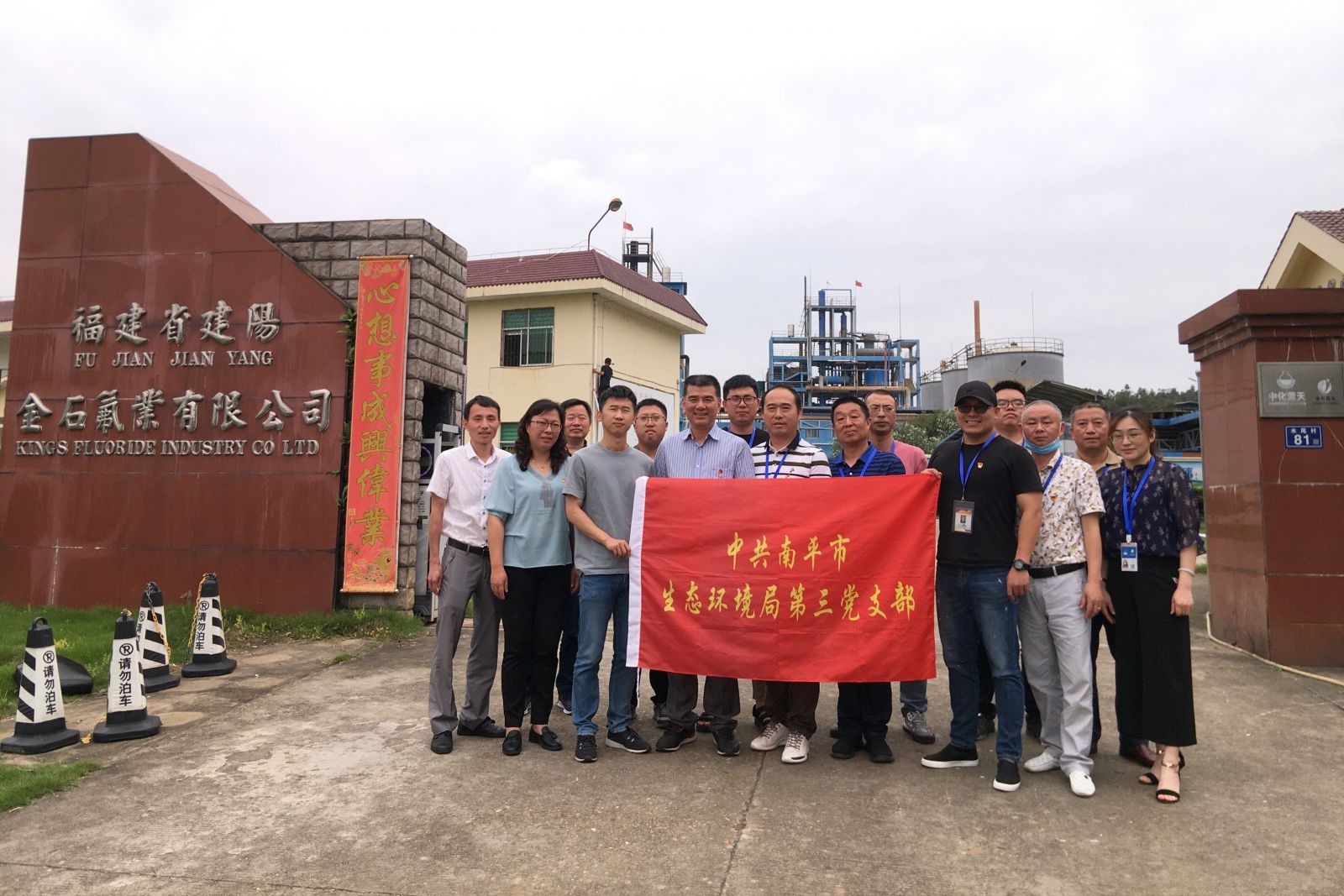 本次活動公司董事長兼總經理陳建華、黨支部書記周遠慧、副總經理陳忠毅等公司領導及其他黨員、入黨積極分子共13人參加;南平市生態(tài)環(huán)境局第三黨支部書記陳忠民及6名黨員參加,并合影留念。