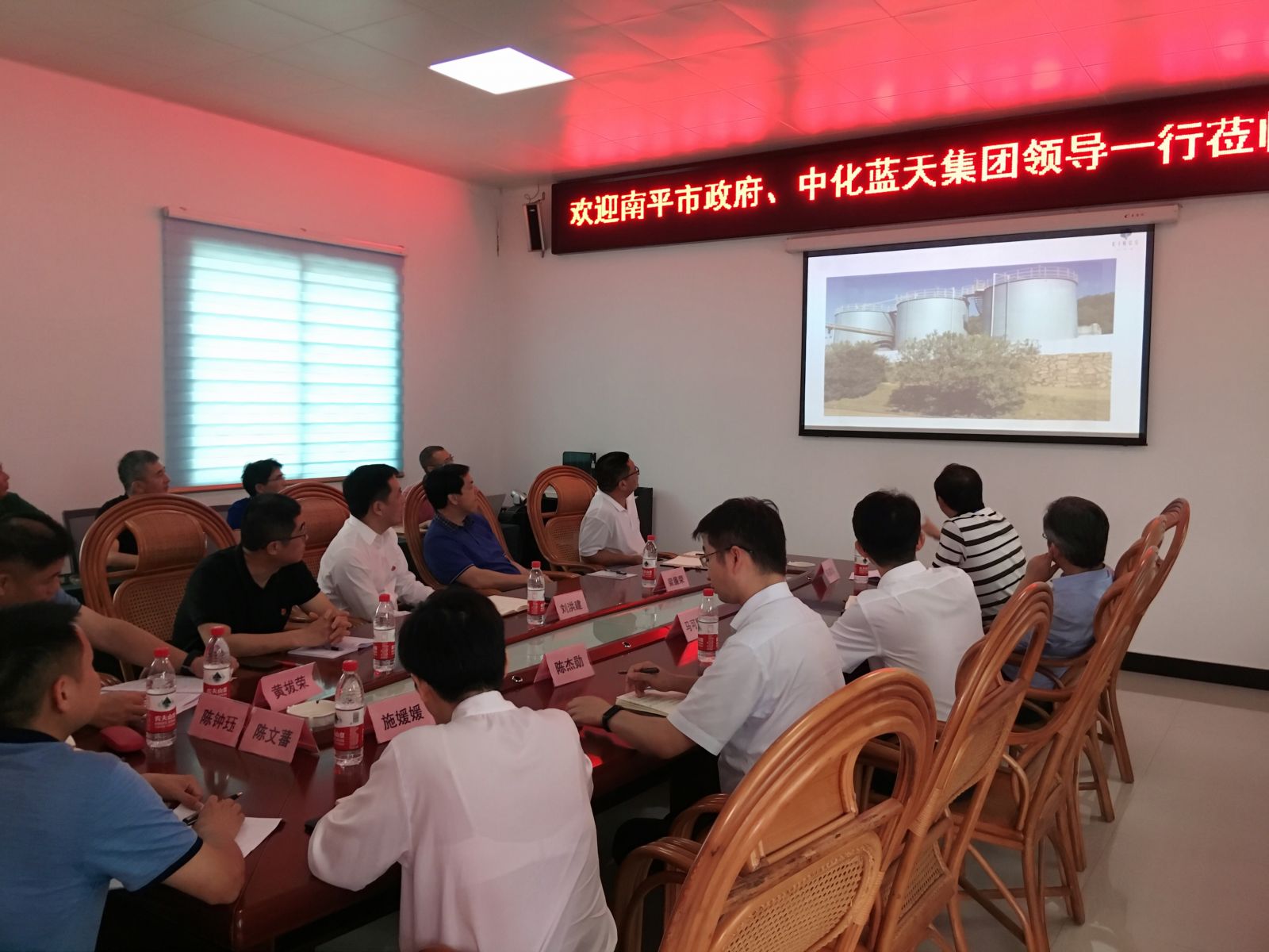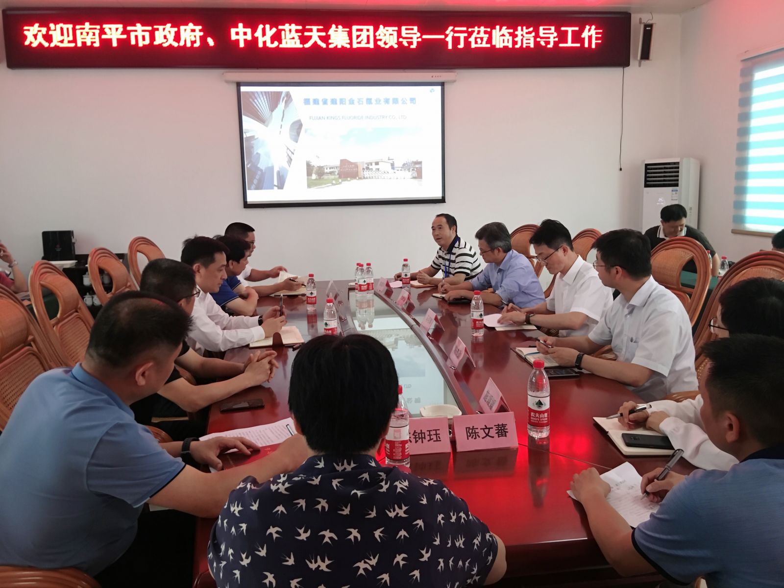 2020年6月8日下午,南平市長劉洪建一行、中化藍(lán)天董事長、黨委書記、總經(jīng)理馬可輝一行蒞臨公司考察并座談。